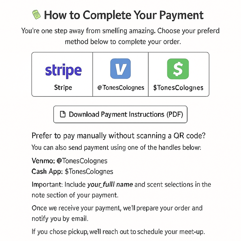 At Tones Colognes, we strive to make your purchase as seamless as possible. Explore our accepted payment methods and policies to ensure a smooth shopping experience, whether online or in-store.